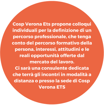 COSP Verona propone percorsi individuali personalizzati per la definizione di un percorso professionale. I percorsi sono rivolti a chiunque voglia trovare un supporto nella creazione un proprio percorso professionale o di un ri-orientamento di carriera.